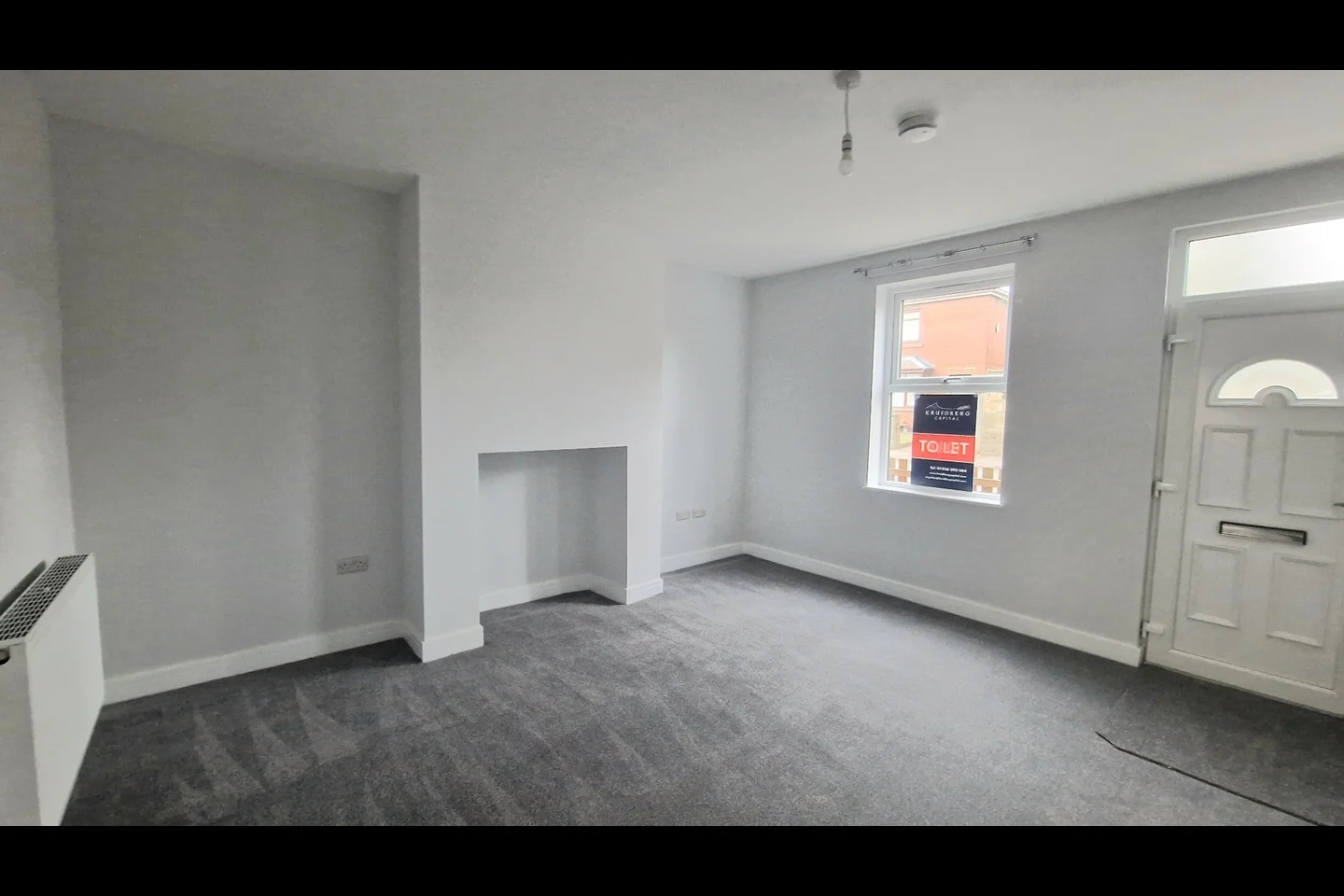 The property has a small front garden area leading to the front door into the large lounge. Into the cosy kitchen with a lots of wall and base units, cooker and dishwasher. Up the stairs leads to the two double bedrooms and the bathroom. The bathroom has a 3 piece white suite with shower.