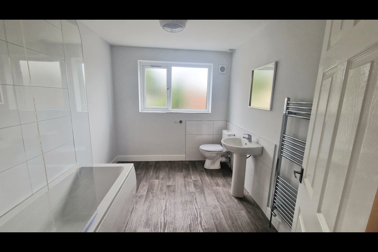 Upstairs you will find the two bedrooms a large double and a smaller room and the bathroom. The bathroom has a white suite with shower, tiles and matching accessories.